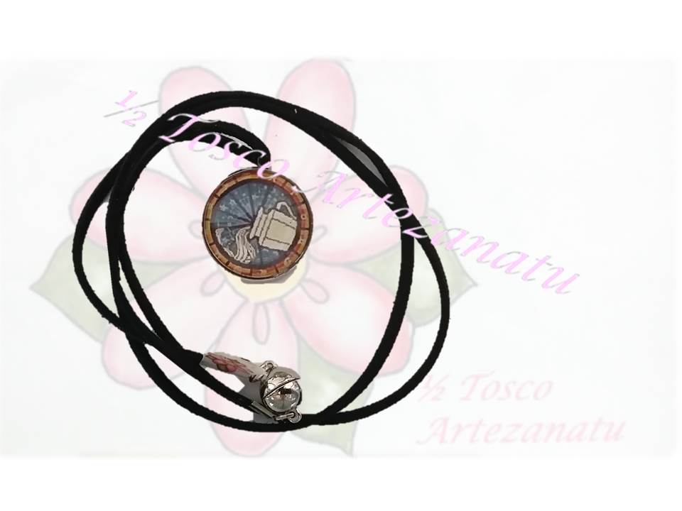 Medalhão Astrologicos com Imagens dos Signos Zodiacais com fio de camurça ajustável em altura e com terminais com aplicações metálicas ou com fecho magnético